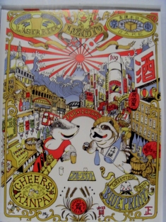 The exhibition presents dozens of designs for future urban living with varying degrees of outlandishness seen in imminent architectural publication Blueprint. Rendered on A4-sized wall displays, they are as much about the architect’s mode of communicating artistically as they are about the use of architecture to explore new creative avenues. London architectural practice 00:/’s imagines somewhat whimsically the “classified ads page” as the basis of communication within a city, and therefore its lifeblood. Takayo Akiyama’s cute but irreverently creepy illustration (pictured above) of a London-Tokyo hybrid centres on famous watering holes in both cities (oh dear!). But those in the know will come to see Paper City for the contribution of Sir Peter Cook., founding member of 1960s avant-garde collective Archigram and possibly Britain’s most celebrated artist-architect. His proposal, conceived with Gavin Robotham especially for this exhibition, imagines the city fully submerged thanks to climate change. It’s just a shame that the proposal is rendered digitally, given Cook’s talents as a cartoonist. And it’s certainly not half as fun as the “plug-in” city he conceived for Archigram.